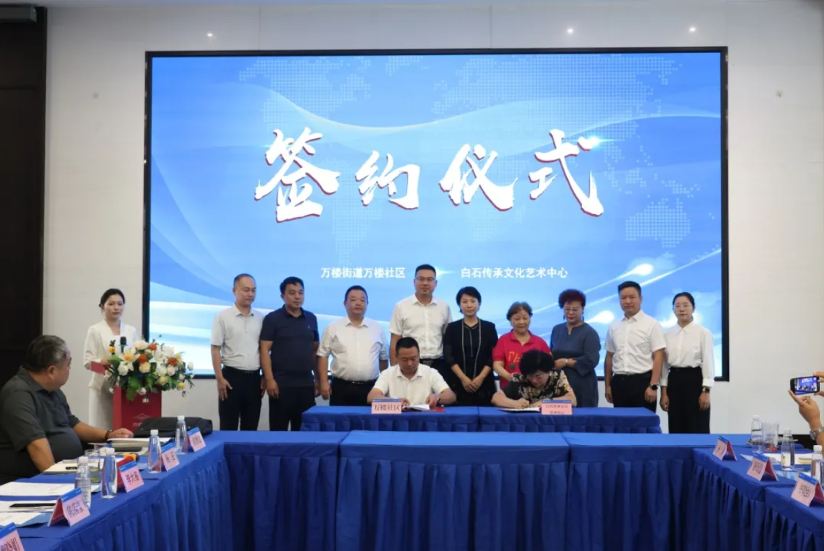 会上,湖南建投·万楼湘玺与万楼街道完成了社区用房的正式移交;万楼社区与白石传承文化艺术中心签署入驻协议。